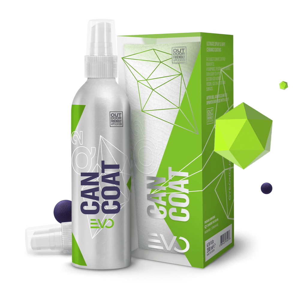 Q² CanCoat EVO provides fast and reliable protection with a simple spray and wipe application. The EVO formula enhances durability while ensuring a smooth application. It works not only on paint but also on plastic trims, metal parts, rims, and glass on side and rear windows. This makes it a versatile all-around coating for exterior surfaces.